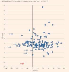 Um relatório do Financial Times observou que uma carteira tradicional composta por 60% de ações e 40% de títulos terá seu pior desempenho desde 1932, quando os EUA estavam no meio da Grande Depressão.