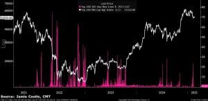 Coutts relatou que, após uma significativa queda do mercado no início de fevereiro, 24% das 200 maiores criptomoedas caíram para mínimas de 365 dias. Esse nível de declínio é o mais alto observado desde agosto de 2024, quando 28% desses ativos sofreram uma retração.