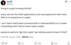 Ser rejeitado em uma entrevista de emprego na área de criptomoedas não é mais raro — é quase esperado. A competição é acirrada: com o amadurecimento do setor, a ascensão da IA e a queda no capital de risco em comparação com a “corrida do ouro” de 2021, as empresas estão elevando seus padrões.