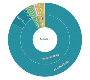 Os EUA e o Canadá juntos representam cerca de 91% do total de redes de caixas eletrônicos de Bitcoin globalmente.