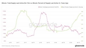 Outros dados da Glassnode descobriram que os endereços que vinham controlando o BTC por pelo menos três anos aumentaram significativamente suas participações nos últimos seis a 12 meses, enquanto os detentores de curto prazo realizaram lucros desde o início de 2020.