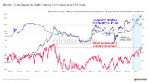 A preços atuais, a Glassnode descobriu que 10,85 milhões de BTC, ou 58% do fornecimento circulante de Bitcoin, estão atualmente em lucro de acordo com a última vez em que foram colocados na cadeia, enquanto 5,3 milhões de BTC estão atualmente em lucro e mantidos por carteiras STH.