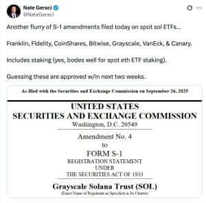 Este debate técnico está agora se desenrolando em tempo real nos registros regulatórios. A SEC dos EUA está atualmente analisando uma série de pedidos de ETFs de Solana e Ethereum, com muitas empresas buscando especificamente incluir recursos de staking. O resultado final permanece incerto, ainda mais complicado por potenciais paralisações do governo dos EUA que poderiam interromper todo o progresso regulatório. A corrida pelo domínio dos ETFs de staking pode ser decidida não pelo sentimento do mercado ou pelo reconhecimento da marca, mas pela lógica fria e implacável de qual arquitetura de blockchain pode se adequar melhor às demandas intransigentes das finanças tradicionais.