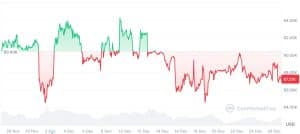 (O Bitcoin caiu 3,29% nos últimos 30 dias.)