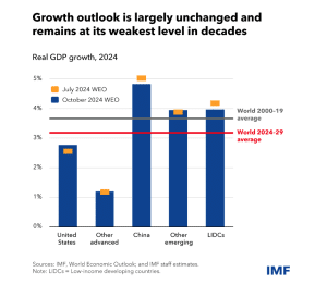Além disso, o FMI disse que os EUA estão posicionados para experimentar a taxa de crescimento mais rápida, e expansões robustas também são prováveis em economias asiáticas emergentes devido a investimentos robustos relacionados à inteligência artificial.