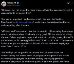 Vitalik Buterin revisitou recentemente o Manifesto Trustless do ETHEREUM para definir resiliência como a proteção definitiva contra falhas catastróficas. Em sua visão, uma rede resiliente deve ser capaz de sobreviver à exclusão política, colapsos de infraestrutura e até mesmo ao desaparecimento completo de sua equipe principal de desenvolvimento. Essa filosofia, frequentemente chamada de teste de abandono, sugere que o valor do ETHEREUM não deve depender de nenhuma empresa específica ou liderança informal. O protocolo deve continuar funcionando como uma ferramenta neutra para qualquer pessoa.