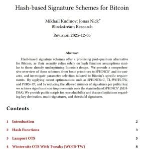 Para lidar com esses temores sem reformular todo o protocolo, pesquisadores da BLOCKSTREAM propuseram recentemente uma solução intermediária envolvendo esquemas de assinatura baseados em hash. Esses esquemas são amplamente considerados naturalmente resistentes a ataques quânticos, pois não possuem as mesmas vulnerabilidades matemáticas que os computadores quânticos são projetados para explorar. Ao contrário das curvas matemáticas complexas usadas atualmente para assinar transações, as assinaturas baseadas em hash se baseiam na mesma lógica fundamental que o Bitcoin já utiliza para mineração e geração de endereços. Ao adotar um modelo de segurança centrado em hash, a rede poderia, teoricamente, alcançar resistência quântica, mantendo-se fiel à sua filosofia de projeto original.