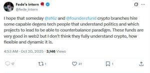 No entanto, é justamente essa contribuição que constitui a base do alerta de Carrone. Ele teme que o ecossistema esteja desenvolvendo uma profunda dependência técnica de um único fundo que, em suas palavras, está “jogando suas cartas de forma muito estratégica”.