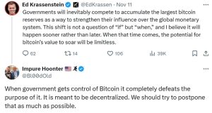 De fato, nem todo mundo acredita na possibilidade absoluta de uma reserva estratégica de Bitcoin como uma ferramenta na geopolítica, especialmente à luz da retórica da campanha de Trump sobre o governo apoiar o Bitcoin como um ativo de reserva. Embora esse conceito tenha provocado reações mistas, ele foi lido como uma ação neutra para a natureza descentralizada do Bitcoin, enquanto outros expressaram preocupação de que isso poderia resultar em centralização.