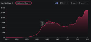 Embora o preço do Ether tenha enfrentado dificuldades — sendo negociado recentemente próximo a US$ 3.000 —, a atividade subjacente da rede atingiu proporções gigantescas. A oferta de stablecoins no ETHEREUM teve um aumento expressivo, crescendo mais de 65% somente em 2025 e dobrando desde o pico do mercado em 2021. Atualmente, a capitalização total do mercado de stablecoins na rede ultrapassa 163 bilhões de dólares, com o TETHER (USDT) mantendo uma participação dominante de 52%. A atividade subjacente atingiu proporções gigantescas. No último trimestre de 2025, o ETHEREUM processou um volume impressionante de transferências de stablecoins de 8 trilhões de dólares, um número que rivaliza com a capacidade de liquidação de gigantes tradicionais de pagamentos globais.