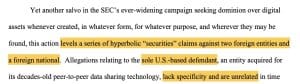 Ele disse que a alegação da SEC de que as vendas secundárias de tokens posteriores em uma plataforma baseada nos EUA que atende usuários em todo o mundo eram títulos não registrados dos EUA é, na melhor das hipóteses, tênue.