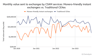 A Chainalysis descobriu que os vendedores de materiais de abuso infantil estão usando misturadores e moedas de privacidade como o Monero (XMR) para lavar seus lucros e fugir da aplicação da lei.