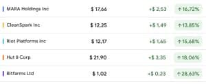 As ações de mineração de criptomoedas apresentaram ganhos notáveis na última semana, com ações de diversos players importantes subindo significativamente em meio a sinais econômicos positivos.