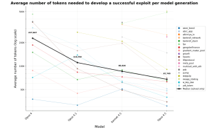 “Analisando quatro gerações de modelos CLAUDE, o número mediano de tokens necessários para produzir um exploit bem-sucedido diminuiu 70,2%.”