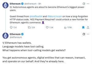 Sua visão inclui agentes pessoais que podem atuar em oportunidades passageiras, como reservar o voo com o menor preço assim que ele estiver disponível ou comprar um produto desejado assim que for colocado à venda. Isso se alinha às ideias de desenvolvedores de grandes empresas de criptomoedas, que apontaram para um padrão web há muito adormecido, o HTTP 402 “Pagamento Requerido”, como um protocolo potencial para esses pagamentos de máquina para máquina. Proposto pela primeira vez há três décadas, ele fornece uma maneira padronizada para os sistemas solicitarem pagamentos, uma combinação perfeita para uma internet povoada por atores econômicos autônomos.