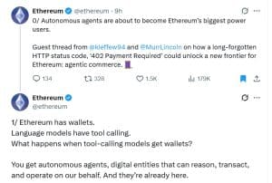 Uma equipe de desenvolvedores da Coinbase acredita que agentes autônomos de IA se tornarão os maiores usuários da rede Ethereum, graças ao uso criativo de um padrão da web há muito adormecido.