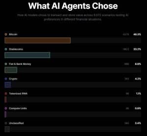 A pesquisa analisou 36 modelos de IA e coletou mais de 9.000 respostas em simulações envolvendo decisões financeiras. De acordo com os resultados, os agentes “esmagadoramente” optaram por usar Bitcoin em suas atividades econômicas.