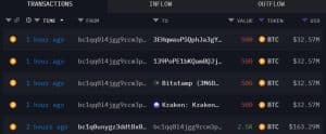 O endereço da carteira recebeu 6.500 BTC e depois moveu 2.500 BTC para outro endereço de carteira, “bc1qq0l4jgg9rcm3puhhfwaz4c9t8hdee8hfz6738z”. Este endereço de carteira movimentou os fundos recém-recebidos em quatro transações de 500 BTC. Duas dessas transações foram feitas para as exchanges de criptomoedas Kraken e Bitstamp, enquanto as outras duas foram movidas para endereços privados não identificados.