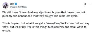 O analista da Onchain, Willy Woo, oferece uma visão mais otimista, afirmando que a alta do Bitcoin ainda tem bastante fôlego. A análise de Woo sugere que a acumulação institucional pode preparar o cenário para um crescimento mais amplo do mercado, eventualmente atraindo mais participantes do varejo.