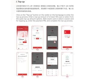 Os turistas que chegam podem usar números de celular estrangeiros para registrar e abrir carteiras e-CNY e fazer uso do recurso de recarga de carteira, que agora suporta pagamentos Visa e Mastercard.