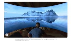 O Apple Vision Pro possui capacidades de realidade aumentada e realidade virtual, permitindo que os aplicativos pareçam projetados no espaço físico próximo ao usuário ou forneçam uma experiência completamente virtual por meio de modos como Ambientes Imersivos. O anúncio diz: