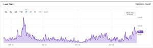 As taxas de gás na rede principal Ethereum permanecem altas, acima de 72 gwei. Uma troca média custaria aos usuários US$86,15 em taxas de gás, enquanto as vendas de NFTs custam em média US$145,60 em gás, de acordo com dados do Etherscan.