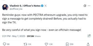 Recentemente, o Ethereum implementou uma atualização significativa na rede, chamada Pectra, projetada para aprimorar a escalabilidade e a funcionalidade de contas inteligentes. Embora essas mudanças tragam avanços técnicos, elas também introduziram, involuntariamente, um sério risco de segurança que poderia permitir que hackers drenassem fundos das carteiras dos usuários usando apenas uma assinatura off-chain — sem que o usuário sequer aprovasse uma transação on-chain.