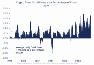 O setor combinado de fundos de criptomoedas viu entradas recorde de US$429 milhões nas últimas duas semanas, com os fundos da Ethereum atraindo investimentos significativos após a conclusão da Fase 0 do Eth2 com o lançamento do Beacon Chain em 1º de dezembro.