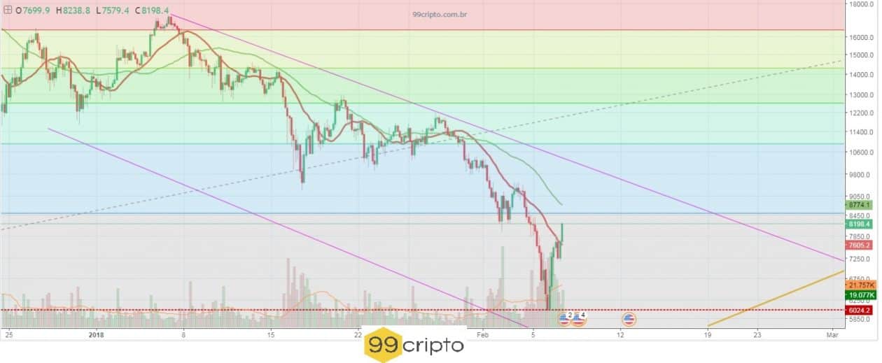 O Bitcoin entrou em uma fase de grande recuperação. E está se mantendo em um canal ascendente nos últimos dias, conforme podemos ver no gráfico