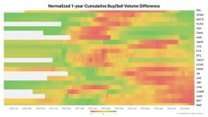 A análise de Ju centrou-se na ‘Diferença de Volume de Cotação de Compra/Venda Cumulativa de 1 Ano para Altcoins’, uma métrica que mede o diferencial entre ordens de limite de compra e venda usando um período de um ano.
