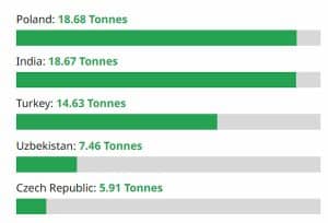 O Banco Nacional da Polônia, o Banco da Reserva da Índia e o Banco Central da Turquia foram os maiores compradores do metal precioso pelo banco central durante o período.