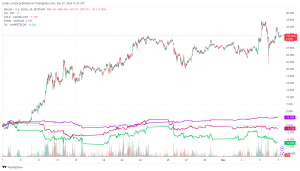 Em 6 de dezembro, o Bitcoin atingiu a máxima nominal histórica de US$100.000, um evento marcante no mercado de criptomoedas. Nas últimas 4 semanas, o preço do Bitcoin aumentou drasticamente em 32% em comparação com os mercados de ações em geral. Os preços do petróleo caíram 6,3%, o S&P 500 perdeu 1% e o ouro caiu 1% no mesmo período.