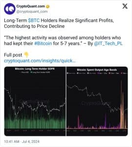 De acordo com a análise, os detentores de BTC de longo prazo, que normalmente mantêm suas participações por cerca de 5 a 7 anos, contribuíram para a pressão de venda no mercado.