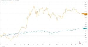 Desde o início do ano, o preço do Bitcoin subiu mais de 47% no acumulado do ano (YTD), enquanto o S&P 500 subiu apenas 15% – o que significa que o BTC superou o índice em mais de três vezes, mostram os dados do TradingView.