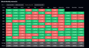 (Setembro foi historicamente o pior mês para retornos de BTC.)