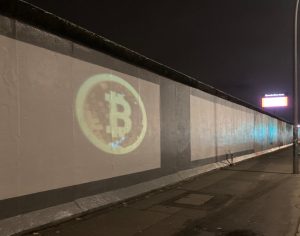 (O Bitcoin B no Muro de Berlim. Fonte: Twitter)