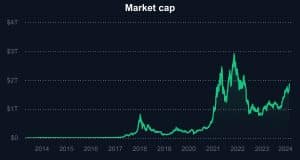 Anteriormente, o Bitcoin registrou um marco de capitalização de mercado de US$1 trilhão em novembro de 2021, durante uma corrida de touros que eventualmente catapultou o BTC para seu máximo momentâneo de US$69.000. Paralelamente, a corrida de touros estendeu-se por todo o ecossistema criptográfico e, pela primeira vez, registou uma capitalização de mercado criptográfica combinada de 3 bilhões de dólares.