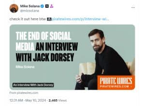 Falando em uma entrevista com o jornalista Mike Solana no Pirate Wires, Dorsey ofereceu uma perspectiva otimista para o movimento de preços de longo prazo do Bitcoin (BTC), além de fornecer mais contexto por trás de sua saída abrupta do conselho da BlueSky – uma empresa descentralizada alternativa ao Twitter que ele ajudou a lançar em 2019.