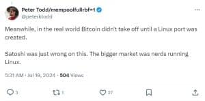 Calle, desenvolvedor da carteira Bitcoin Cashu, lembrou aos usuários que o fundador do Bitcoin, Satoshi Nakamoto, havia originalmente argumentado contra o desenvolvimento de um cliente Linux.