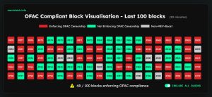 A porcentagem de blocos Ethereum que cumprem as ordens estabelecidas pelo Escritório de Controle de Ativos Estrangeiros dos Estados Unidos (OFAC) caiu para 47% – o nível mais baixo desde 11 de outubro de 2022.