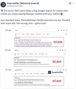 Outras empresas de criptomoedas enfrentam ameaças semelhantes. A empresa de segurança Scam Sniffer alertou recentemente que golpistas estão manipulando os resultados de busca do Google, exibindo anúncios fraudulentos no topo de buscas relacionadas a criptomoedas. Essa tática corre o risco de levar os usuários a sites de phishing que roubam credenciais de carteira. A empresa aconselhou os usuários a evitarem depender apenas da busca do Google para encontrar sites de criptomoedas, a fim de reduzir o risco de serem vítimas desses golpes.