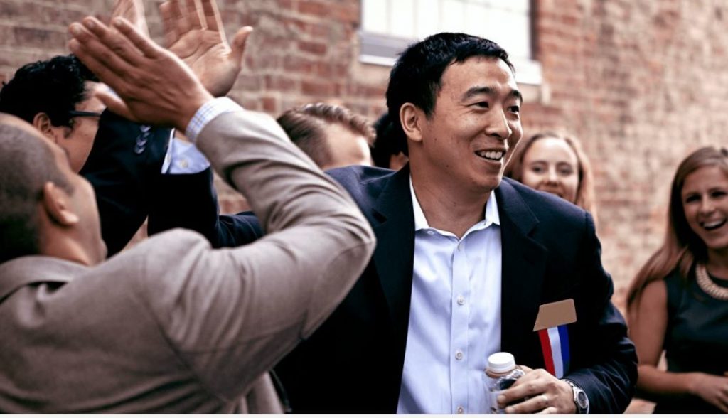 Yang, cuja organização está sediada na cidade de Nova York, favorece um novo tipo de economia capitalista chamada “capitalismo humano”, que é voltado para a maximização do bem-estar humano.