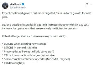 Vitalik Buterin, cofundador do ETHEREUM, reconheceu essas preocupações, mas apoiou o aumento atual. Ele vê a mudança para 60 milhões como apenas o primeiro passo para um desempenho mais refinado. Em vez de aumentar uniformemente o tamanho dos blocos indefinidamente, o que seria insustentável, ele vislumbra um futuro de crescimento direcionado. Isso envolve encarecer operações específicas e ineficientes, ao mesmo tempo que se expande a capacidade geral para transações padrão. O objetivo é escalar com segurança, garantindo que um adolescente em um porão ainda possa verificar o blockchain em um laptop comum.