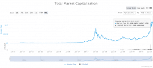 O valor combinado de todas as criptomoedas quebrou um novo recorde de cerca de US$1,139 trilhão às 8h50 UTC de 4 de fevereiro. Enquanto analistas de longo prazo costumam olhar para as chances individuais do Bitcoin de consumir a capitalização de mercado total do ouro, o valor combinado de todos as criptomoedas juntas é atualmente mais competitivo com a capitalização de mercado total da prata, de pouco menos de $1,5 trilhão.