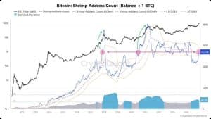 À medida que o Bitcoin continua a ultrapassar a marca de US$100.000, os analistas estão prevendo que o número de carteiras “camarão” (carteiras com menos de 1 BTC) aumentarão em aproximadamente 9% no futuro próximo. Esses investidores de baixo valor, também conhecidos como “camarões”, no mundo do blockchain estão aumentando constantemente a quantidade de Bitcoin, mostrando forte crença no futuro das criptomoedas.