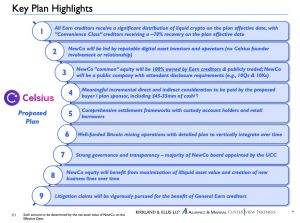 1-Last night Celsius (with UCC support) selected NovaWulf to sponsor a reorganization plan that will distribute liquid crypto to all account holders, as well as create a litigation trust and provide creditors with common equity in a NewCo holding illiquid assets like mining.