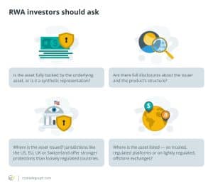 No entanto, embora os números de crescimento pareçam impressionantes, alguns participantes do mercado alertam que a adoção efetiva da tokenização de RWA ainda está em estágio inicial. Obstáculos regulatórios, falta de estruturas padronizadas e ceticismo dos investidores em relação à forma como esses tokens são lastreados continuam sendo os principais desafios. Uma das principais preocupações em relação aos tokens RWA é como os emissores garantem que cada token permaneça totalmente lastreado pelo ativo do mundo real correspondente.
