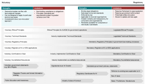 O governo está querendo feedback sobre como apoiar o uso seguro e responsável da IA e discute se deve adotar abordagens voluntárias, como estruturas éticas, se uma regulamentação específica é necessária ou adotar uma combinação de ambas as abordagens.