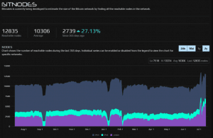 De acordo com os dados do Bitnodes.io, painel de estatísticas da rede Bitcoin, esse marco foi alcançado em 5 de julho, quando o número de nós alcançáveis atingiu 13.374. Atualmente, os dados da Bitnodes colocam a contagem de nós da rede atual em cerca de 12.835.