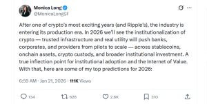 A tradicional barreira entre o Vale do Silício e Wall Street está finalmente se dissolvendo, à medida que 2026 marca a transição da tecnologia blockchain de um experimento para a camada operacional das finanças modernas. De acordo com a presidente da RIPPLE, Monica Long, aproximadamente metade das empresas da Fortune 500 terá formalizado estratégias de ativos digitais até o final deste ano. Cerca de 250 gigantes americanas estão migrando para a participação ativa em ativos tokenizados. Esse movimento indica que o setor passou anos estabelecendo bases que agora florescem nos balanços das empresas mais influentes do mundo.